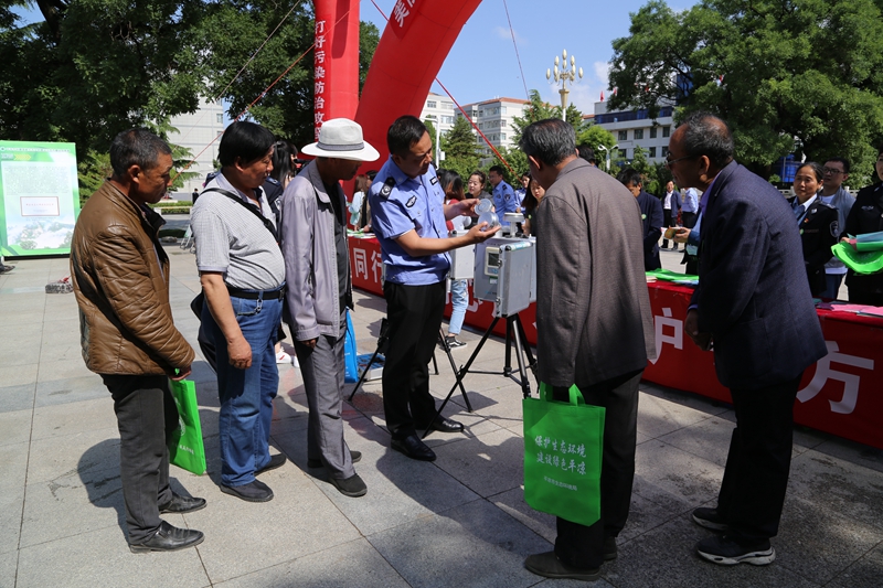 (局領導向現(xiàn)場群眾發(fā)放生態(tài)環(huán)境保護宣傳資料)
